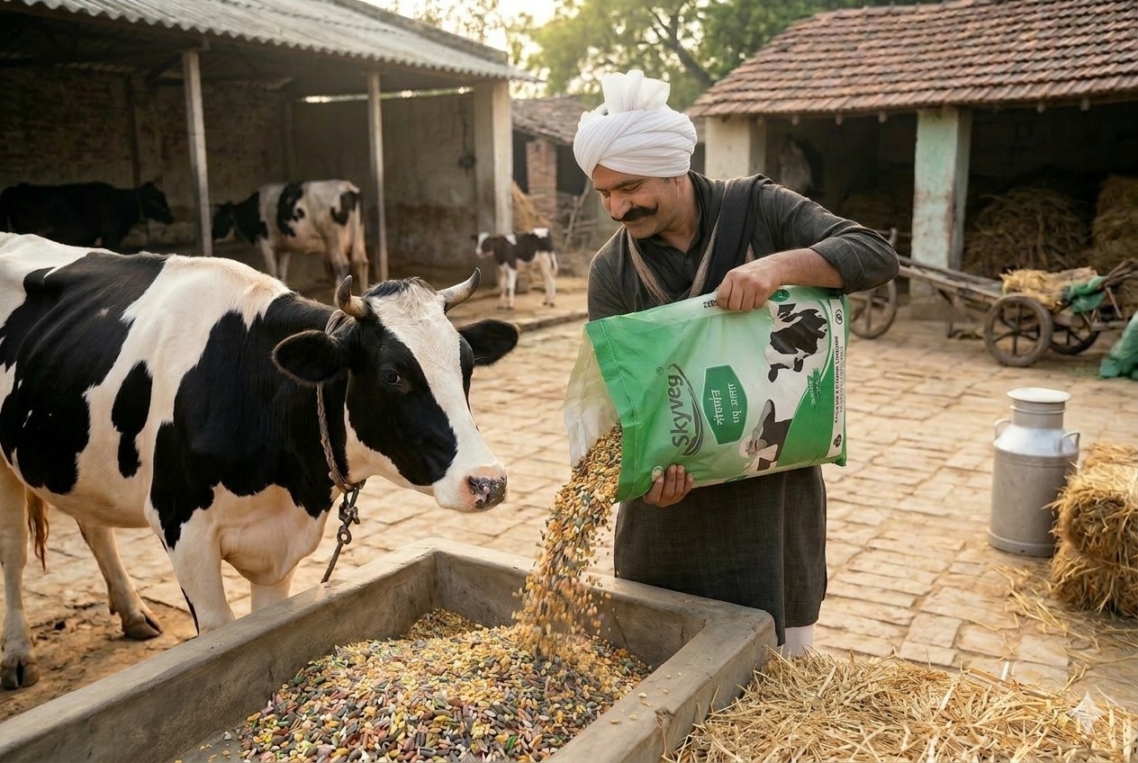 At SKYVEG, we are dedicated to revolutionizing dairy farming by providing high-quality, scientifically formulated cattle feed. Our mission is to empower farmers with nutrition that ensures animal health, increases productivity, and maximizes profitability.